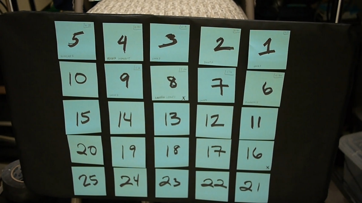 During our first few attempts, Mystery Man had a hard time letting me know all of the instructional timings. So in order for Mystery Man to film, direct, and time all of the boxes accurately, he programmed notes on a video that appeared on his computer screen so that he could direct me as I faced the camera.